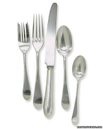 The salad plate can be brought to the table if needed. This is the hub of the wheel and is usually the first thing to be set on the table. The bowl of the spoon faces the forks and is always on top of the fork when placed horizontally on top of the place setting. Name cards are always a good idea for place settings if the dinner party is large and you want guests to mix and mingle. Proper silverware placement etiquette for a very formal table for a multicourse meal demands an appetizer fork, a salad fork, an entree fork, an oyster fork, a soup spoon, a dessert fork or spoon. The dessert spoon (or dessert knife) is laid on the table above the dinner plate in a horizontal position, handle facing right. Eliminate the salad fork if no salad is served or place it to the right of the dinner fork to use as a dessert fork if appropriate. The dessert fork is laid beneath the dessert spoon (or dessert knife), handle facing left. It is not made as part of a flatware set. The dessert fork or spoon should be centered above and parallel to the dinner plate. Forks (except for the oyster fork, which is placed to the right of the spoons) are always on the left. In our illustration, the dinner plate would be placed where the napkin is, with the napkin on top of the plate. These go directly above the main place setting, positioned horizontally, with the fork's tines facing right and the spoon's bowl facing left.