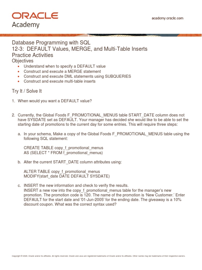 Rebuilding the table with alter table move can (and probably will) make it bigger, as all the defaults are initialized at the block level. The default keyword provides a default value to a column when the oracle insert into statement does not provide a specific value. The alter table statement is also used to add and drop various constraints on an existing table. Set tablespace new_tablespace nowait alter table if exists name attach partition partition_name for values these forms set or remove the default value for a column. Setting a default value for a column will not affect the existing data in the table.